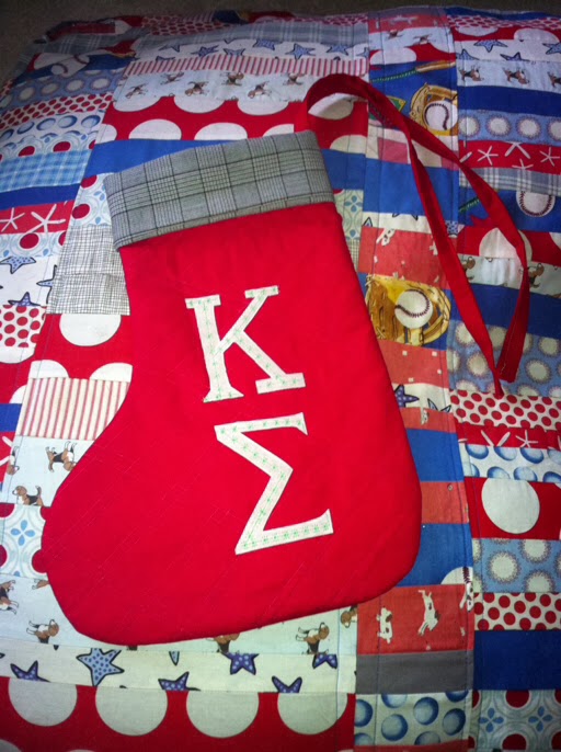 I made a pillow for Mitch, who is now a Kappa Sigma.  There will be more Kappa Sigma presents under the tree.  His Great Aunt gave him a Kappa Sigma bow tie for his birthday last month (he LOVES bow ties!) He thinks they're cool.  :-).